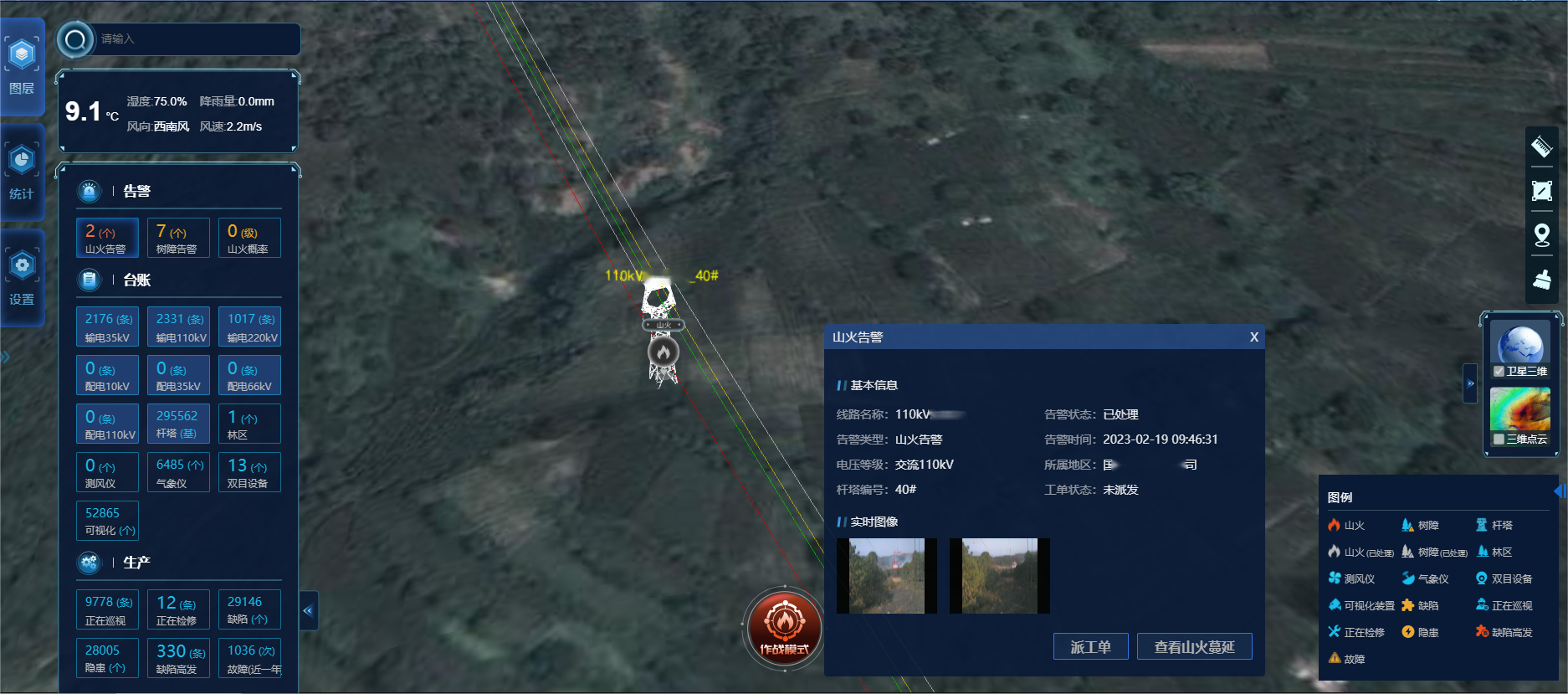 接入信息外网服务器,对接工单驱动业务中心、辅助决策体系,将树障风险识别、山火告警识别整合到辅助决策体系中,实现对运维人员的辅助决策、下发工单预防、治理山火的技术支撑。